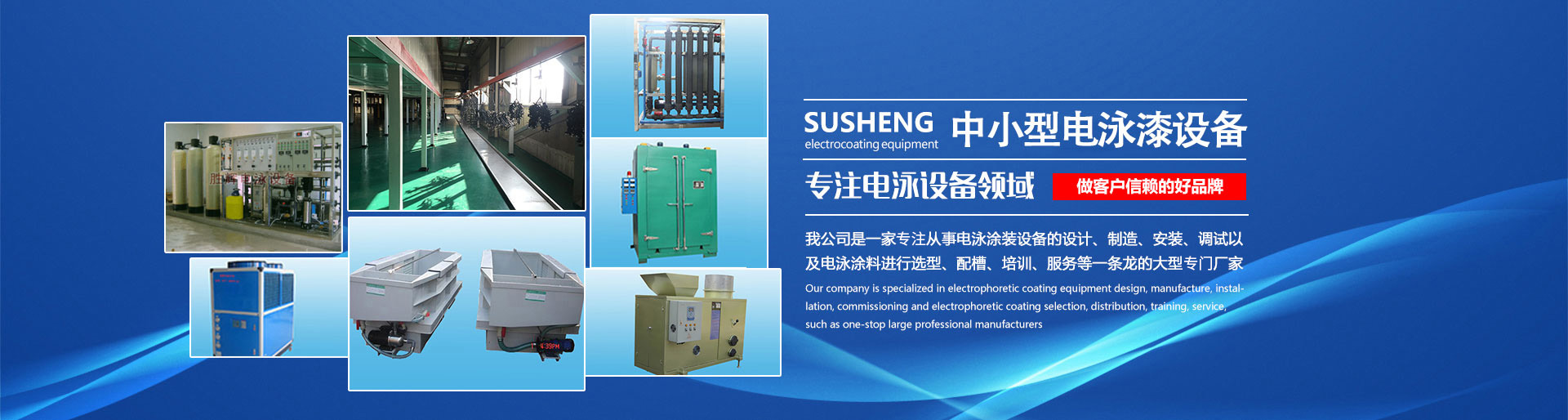 本公司是專門從事電泳涂裝設備以及電泳流水線、環保設備的廠家,主推電泳涂裝設備+環保科技設備一站式生產銷售服務。公司集設計制造、安裝、調試一體化服務,解決客戶因行業技術盲區所困擾的難題。公司在全國各地開辦了分公司及辦事處,向全國各地新老客戶推出一系列產品:大型電泳流水線、新型涂裝線、廢氣廢水處理設備、工業凈水設備、烘干設備、超聲波清洗設備、各類檢測儀、設備零部件等等。